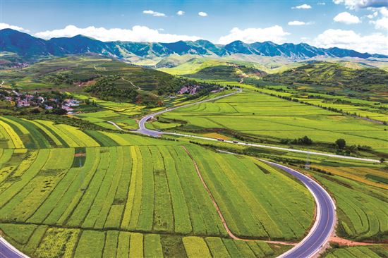 在這里,山水皆靈,無(wú)論是層巒疊嶂、云開(kāi)日出,還是淳樸民俗、紅色傳奇,皆是亮眼的風(fēng)景;在這里,阡陌相通,無(wú)論是紅黑枸杞、五谷雜糧,還是葡萄美酒、蘋果梨花,正成搶手的生意。路網(wǎng)暢通處,熙熙攘攘,日益高效的城鄉(xiāng)人流物流,促進(jìn)了農(nóng)業(yè)產(chǎn)業(yè)轉(zhuǎn)型升級(jí),也讓美麗鄉(xiāng)村宜居宜業(yè)煥發(fā)生機(jī)……六盤山,曾經(jīng)記錄下歷史轉(zhuǎn)折的奇跡,而今正見(jiàn)證一個(gè)擺脫貧困的新時(shí)代。